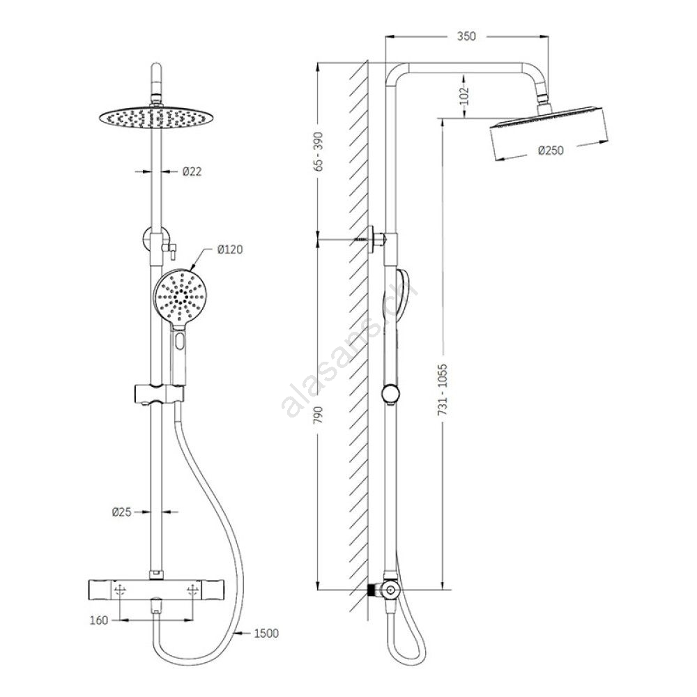 • Il set comprende una rubinetteria termostatica in ottone massiccio.