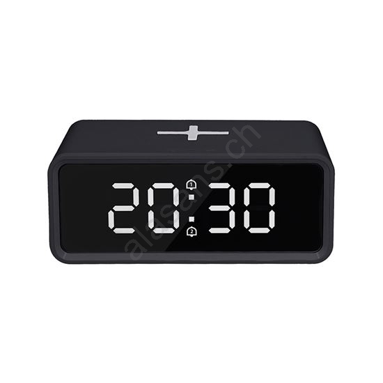 Orologio digitale con caricatore wireless Qi 230V/CR2032 nero