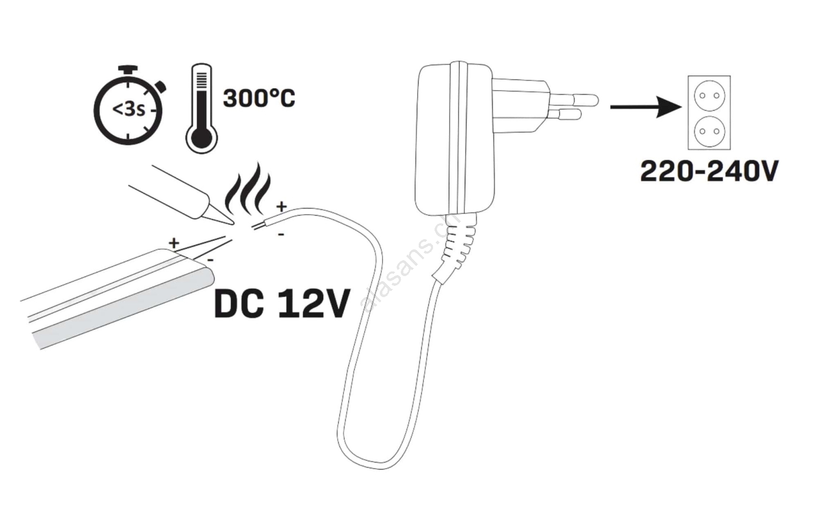 • Necessita per il funzionamento di almeno una fonte di alimentazione elettronica da 20W per strisce LED (non inclusa).
