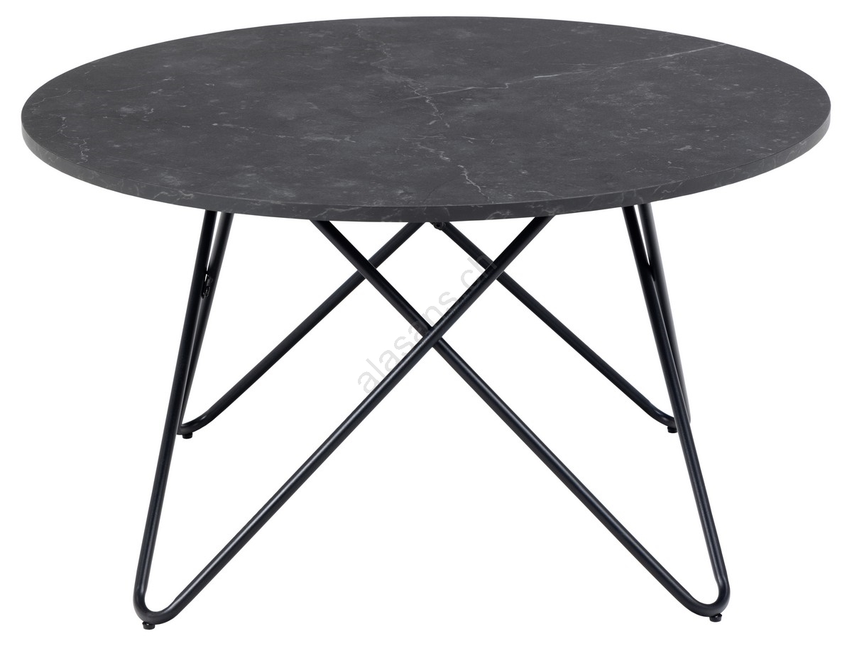 • Il piano rotondo con finitura effetto marmo nero offre una superficie elegante per gli elementi decorativi.