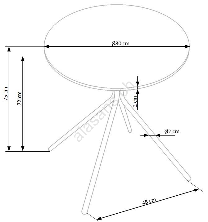 • Il piano di diametro 80 cm offre ampio spazio per mangiare comodamente o per lavorare.