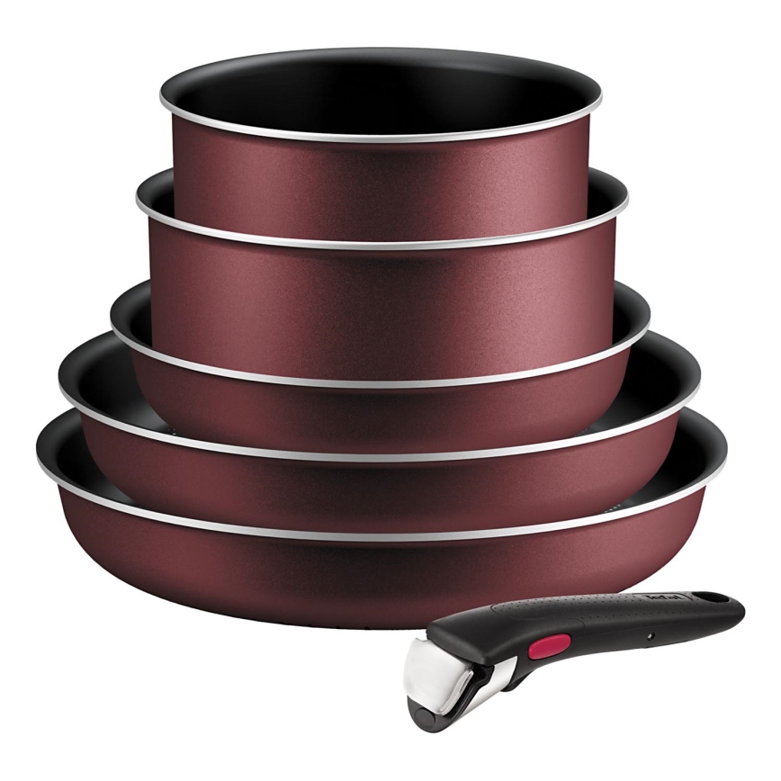 • Set di pentole e padelle in 6 pezzi Tefal Ingenio Simply Cook in elegante design rosso (bordeaux).