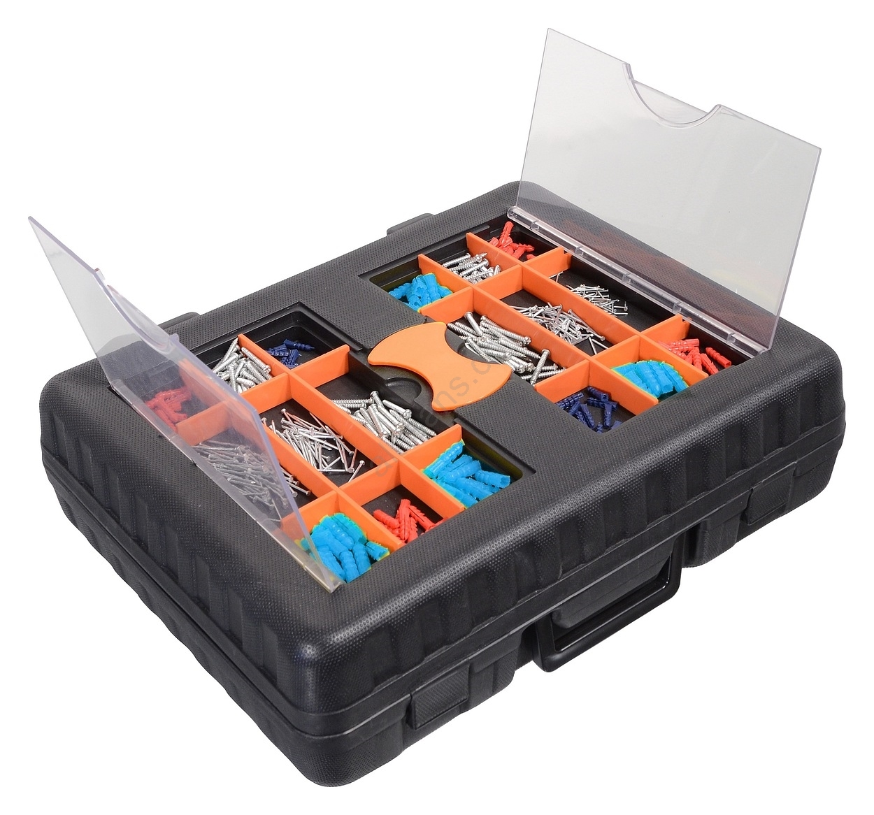 • Il set comprende una varietà di trapani, punte, bussole, cacciaviti, pinze, martello, livella, chiavi laterali, elementi di fissaggio di base e una varietà di altri strumenti.