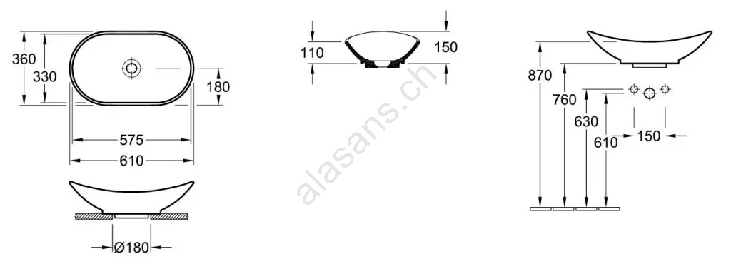 Villeroy & Boch 411060R1 - Lavabo da appoggio MY NATURE 61x36 cm ceramica/bianco