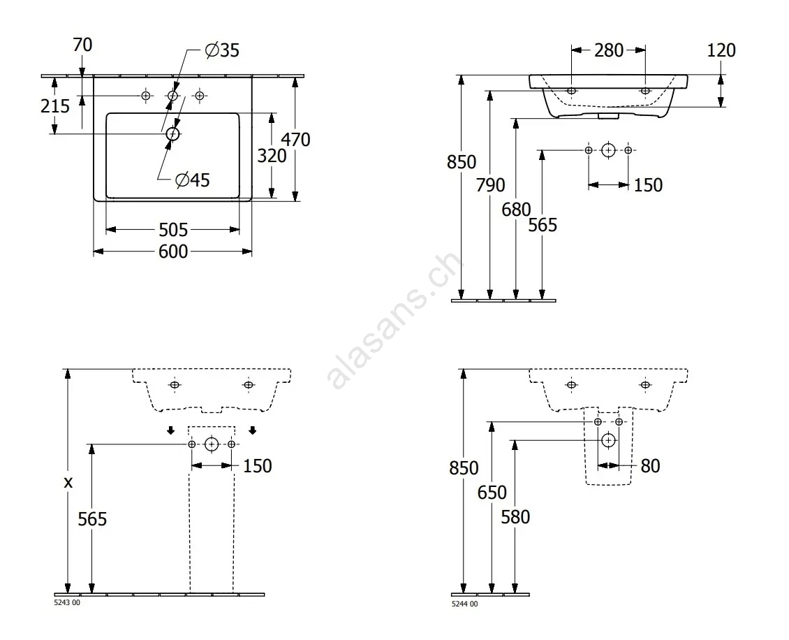 Villeroy & Boch 4A706001 - Lavabo sospeso SUBWAY 3.0 60x47 cm ceramica/bianco