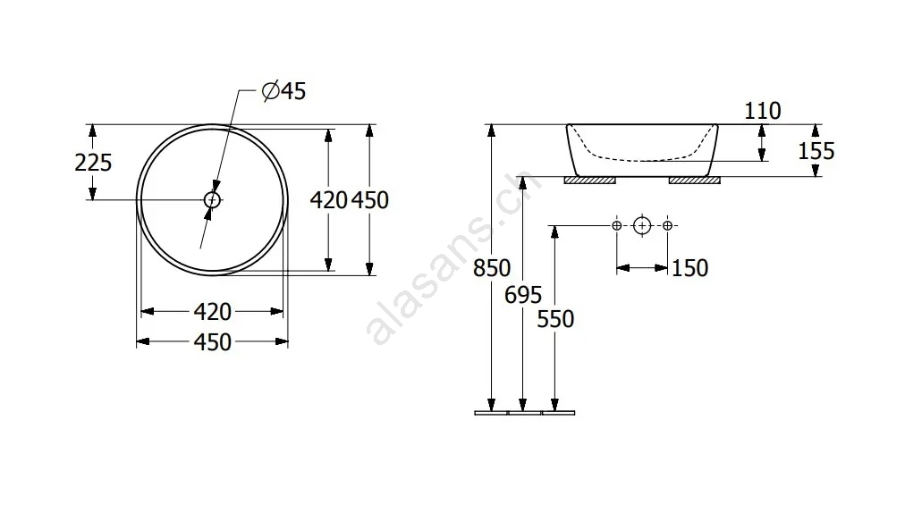 Villeroy & Boch 5A254501 - Lavabo da appoggio ARCHITECTURA diametro 45 cm ceramica/bianco
