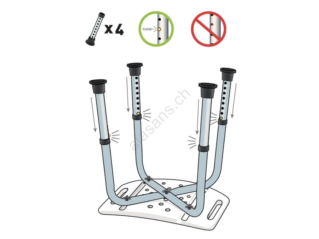 • La sicurezza è aumentata dai puntali antiscivolo per le gambe, che impediscono lo scivolamento del sedile.