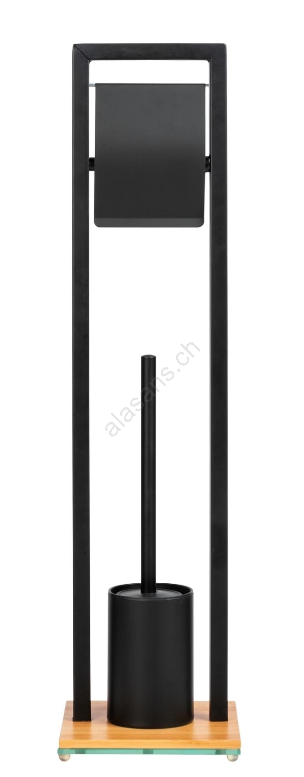 • Set WC elegante 2 in 1 – portarotolo per carta igienica e scopino WC in un unico complemento.