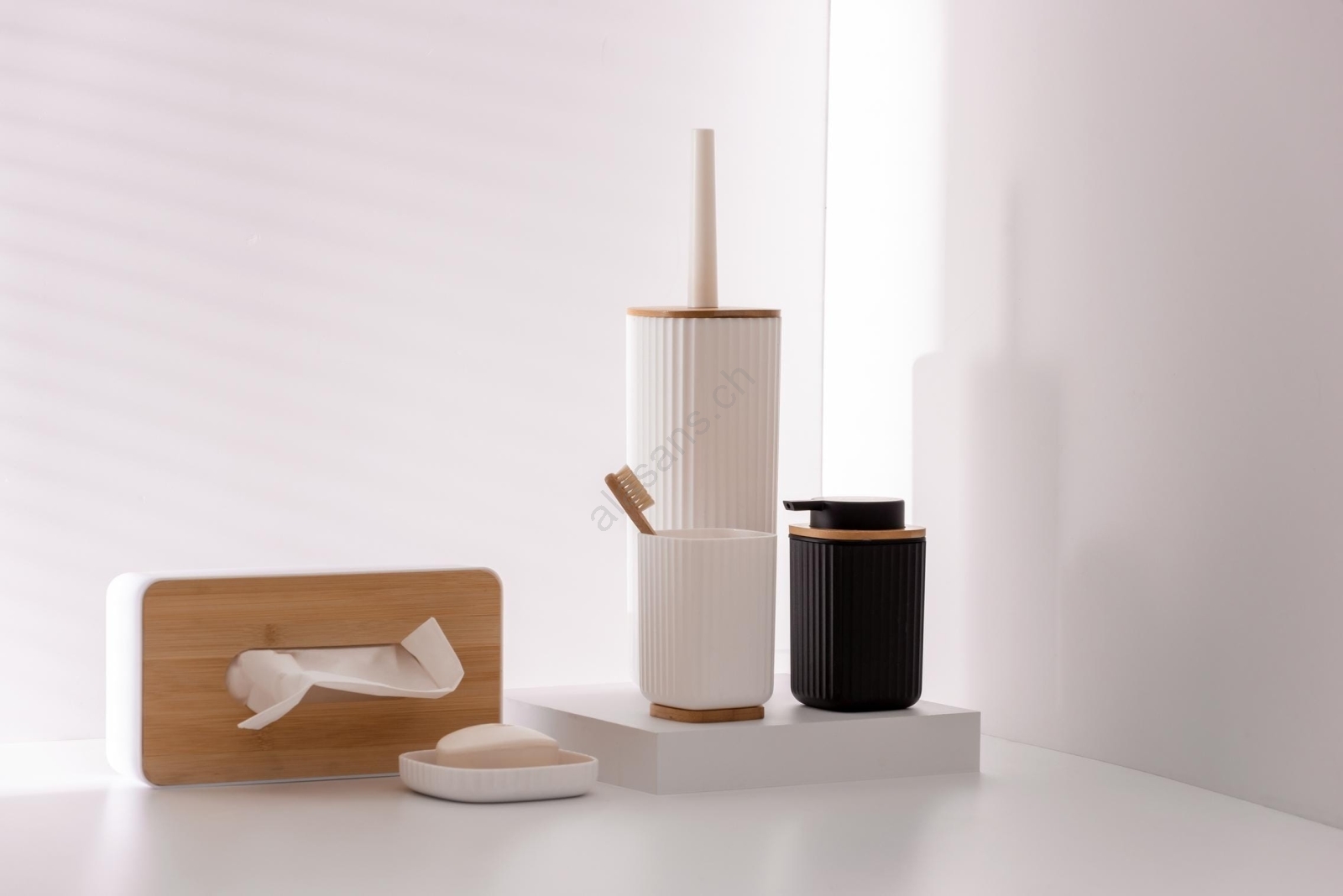 • L'aspetto naturale della base in bambù dona al bagno un tocco accogliente e fresco.