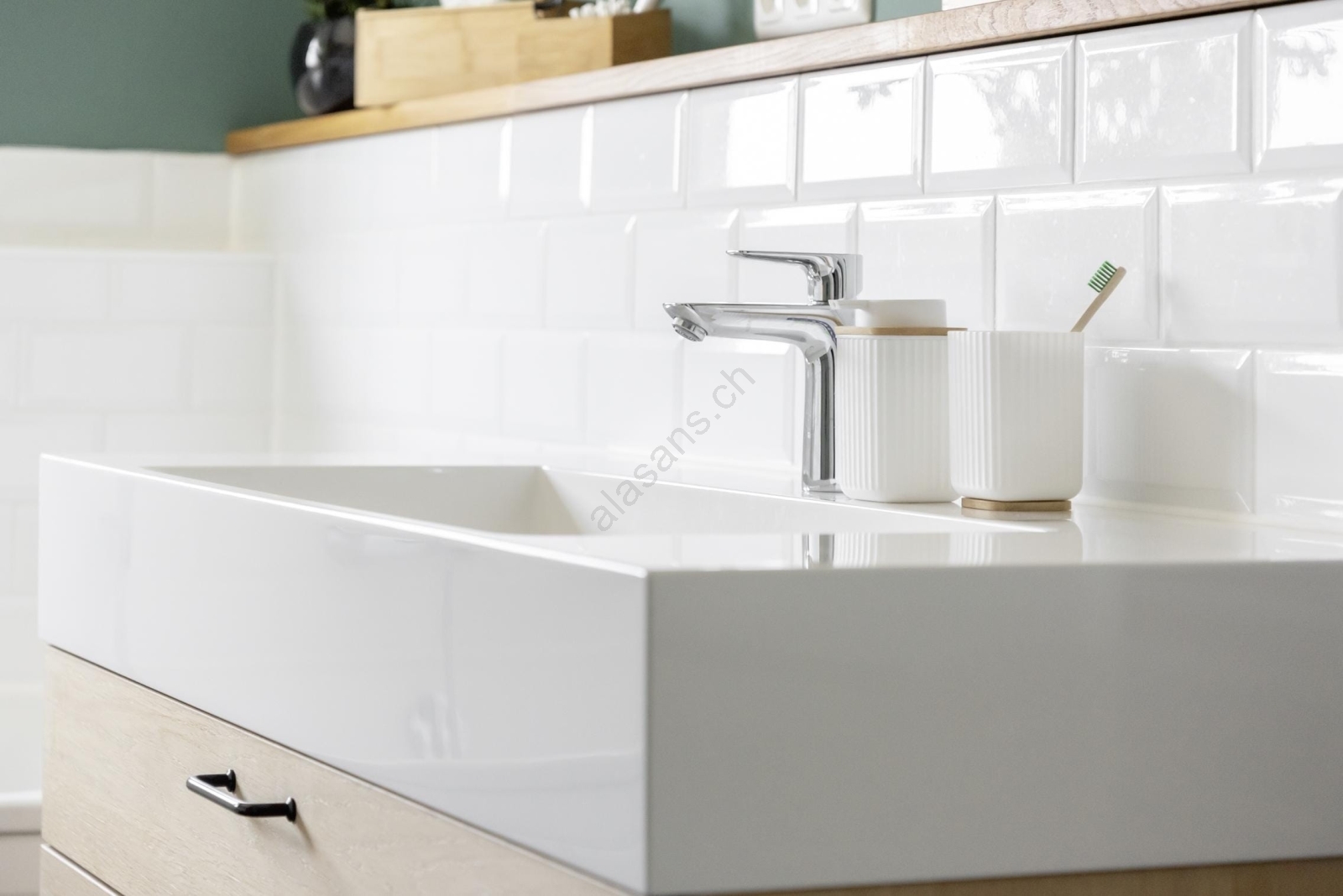 • Un accessorio di stile che si integra perfettamente al lavabo o su una mensola del bagno.