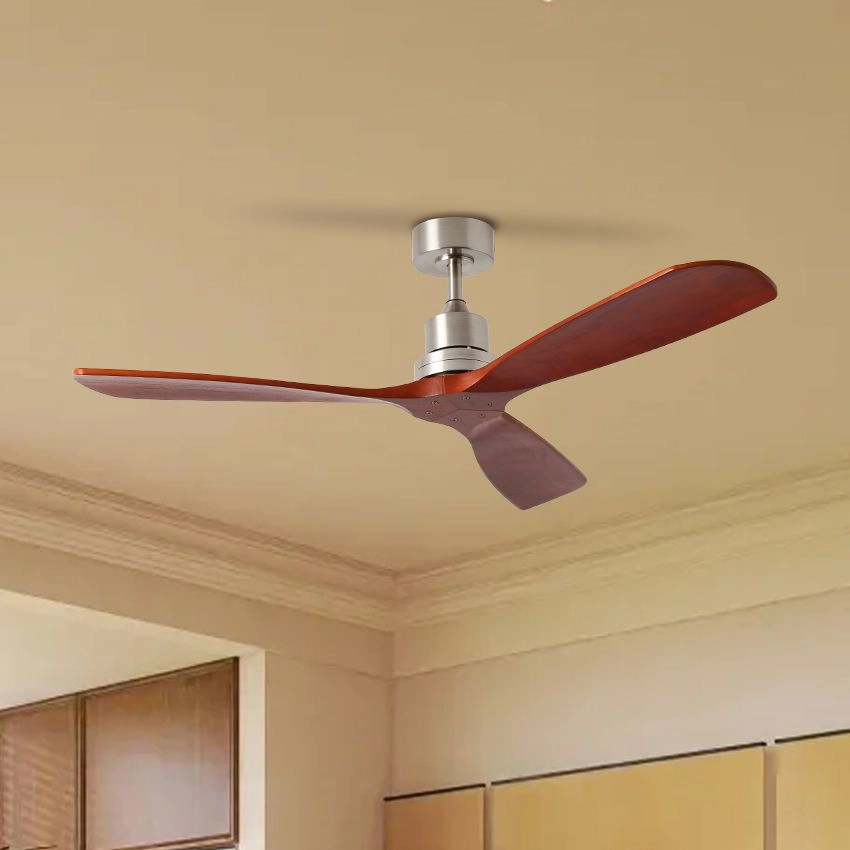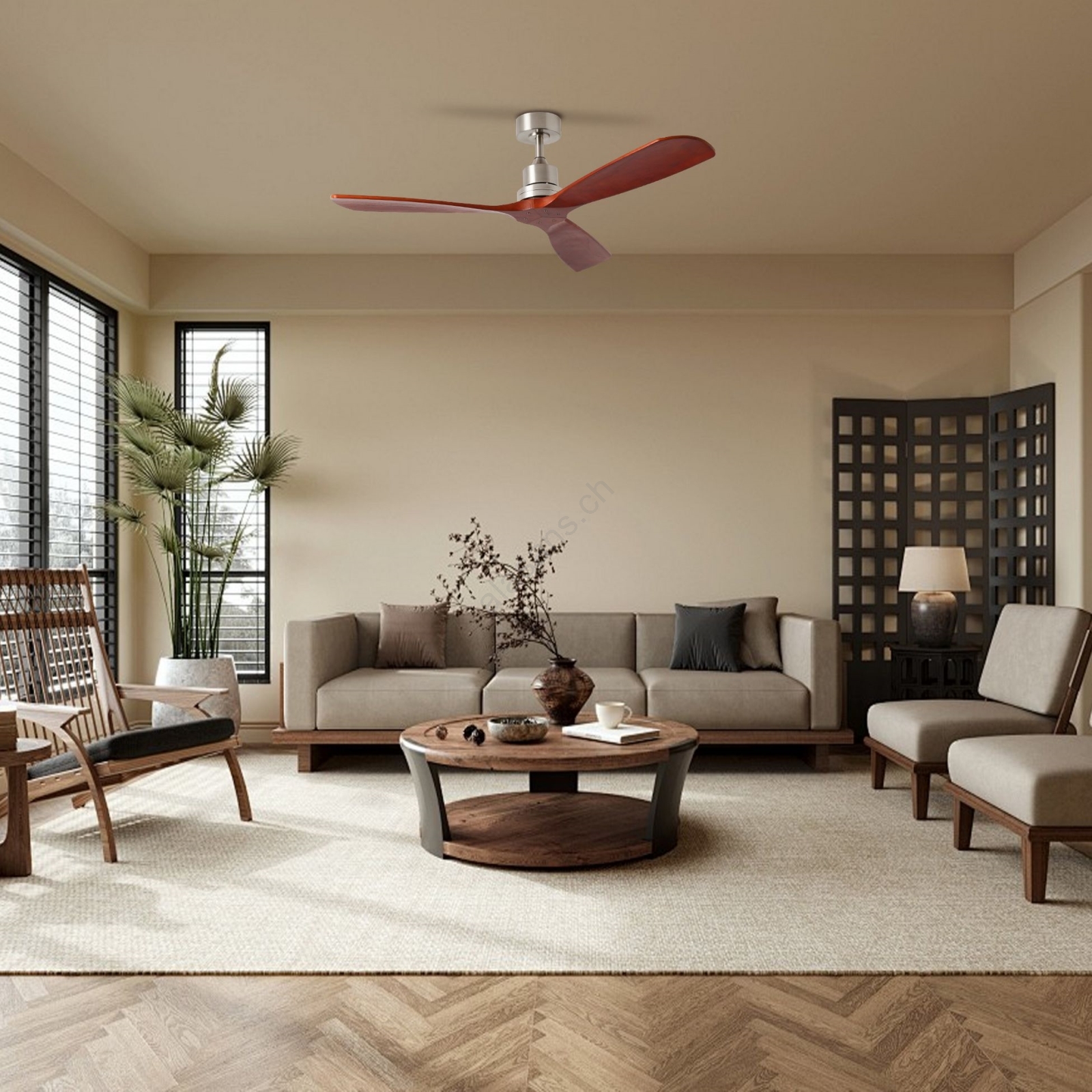 ZEVENTI - Ventilatore da soffitto LIONI Wi-Fi Tuya cromo satinato/rovere + telecomando