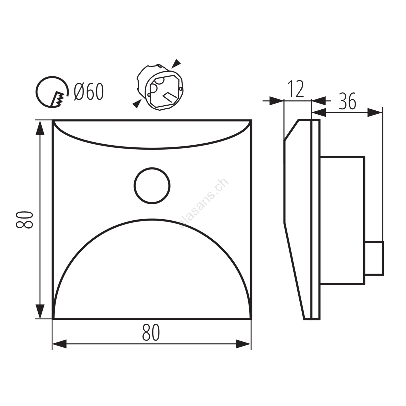 • Passend für standardmäßige Elektroinstallationsdosen mit einem Durchmesser von 60 mm (nicht im Lieferumfang enthalten).