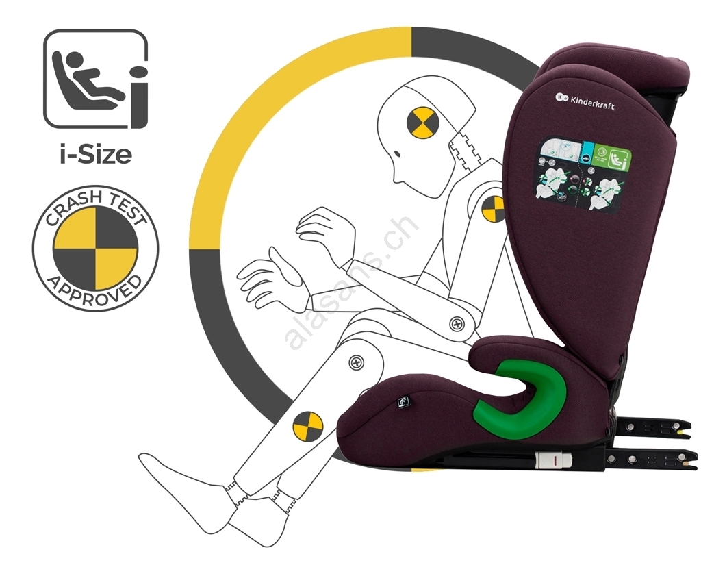 • Installation mittels ISOFIX und Dreipunkt-Sicherheitsgurt.