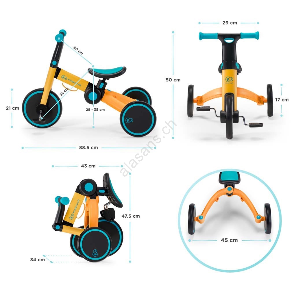KINDERKRAFT - Kinderlaufrad 3in1 4TRIKE Gelb/Türkis