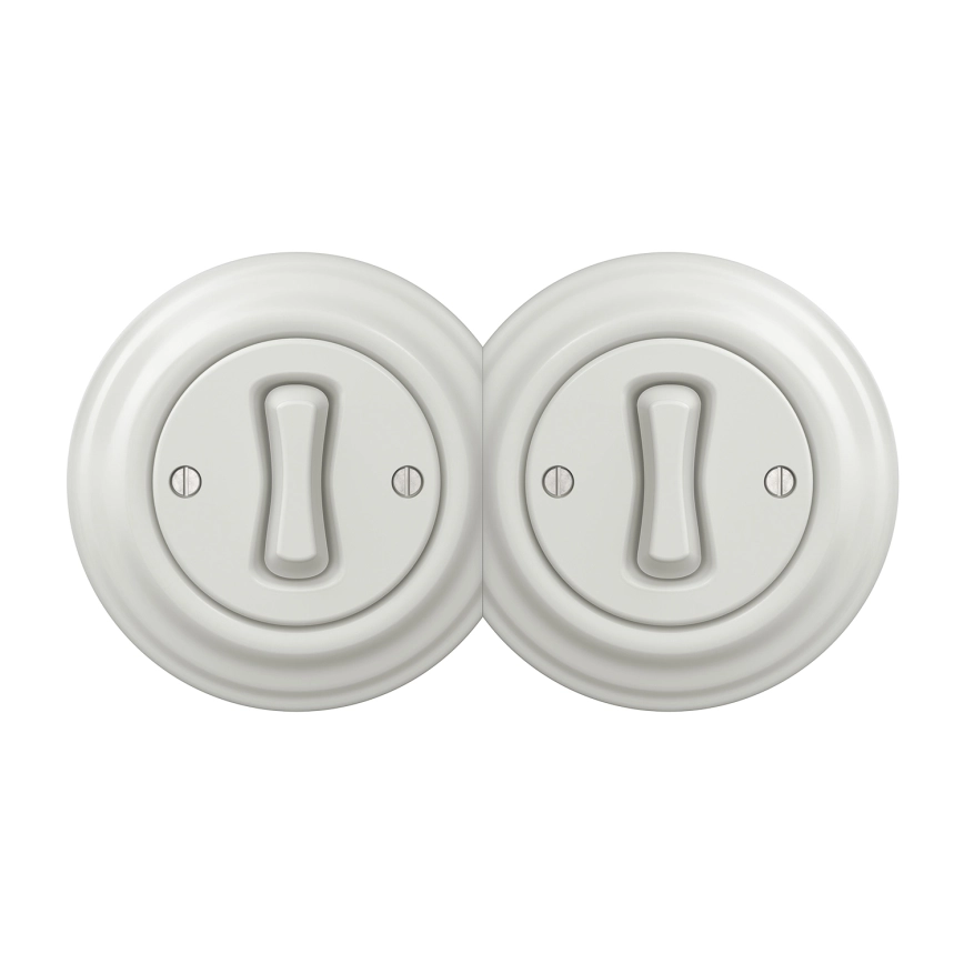 Kliklap - Doppelter Retro-Einpolschalter mit Rahmen Nr. 1, weiß