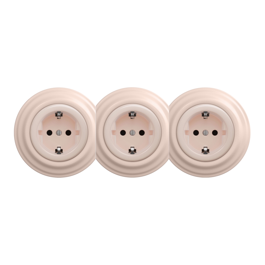 Kliklap - Dreifach-Retro-Wandsteckdose mit Rahmen, SCHUKO 230 V, Altrosa