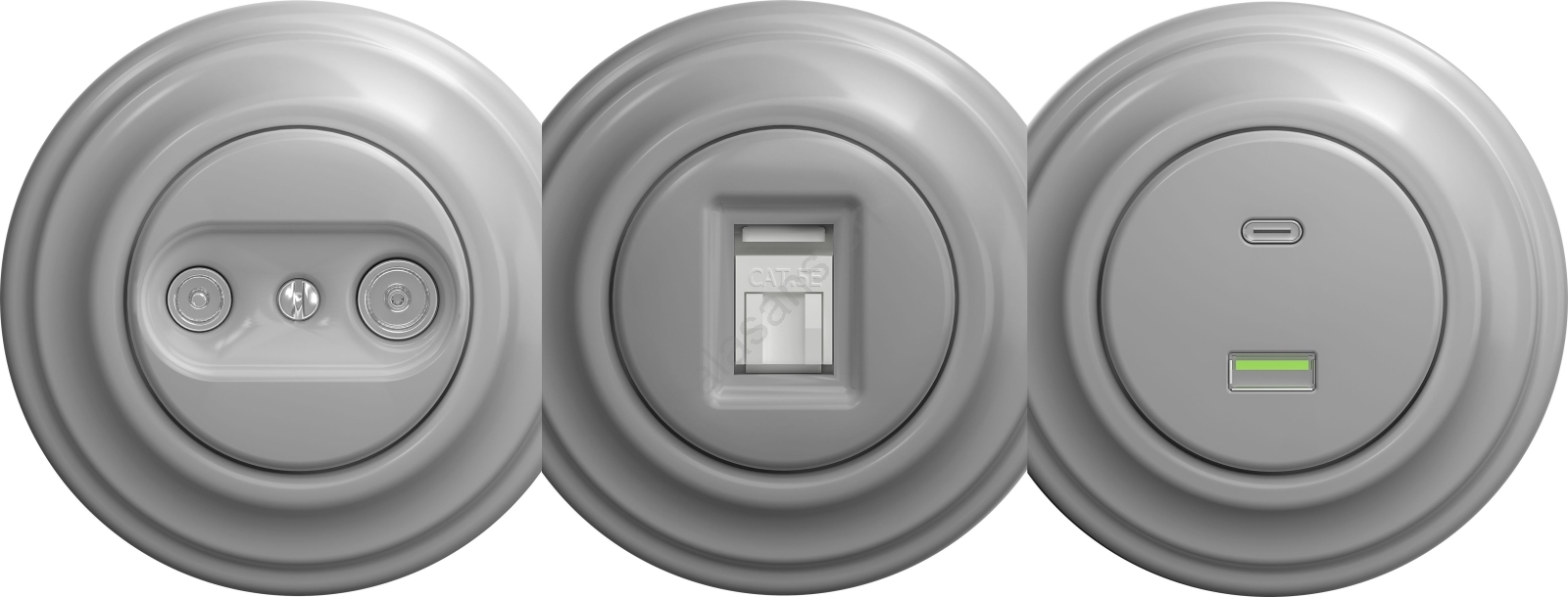 Kliklap - Retro Teilnehmerdose TV+R (durchgeschleift) ohne Rahmen grau