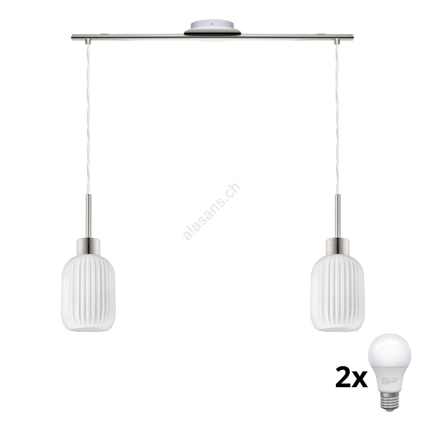 LED-Pendelleuchte HARMA an Kabel, 2x E27/60W/230V, mattchrom/weiß