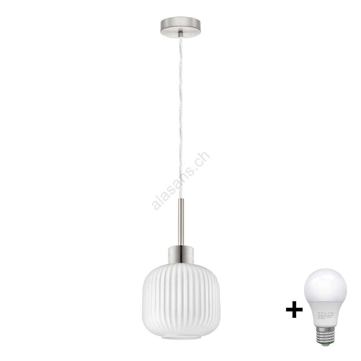 LED-Pendelleuchte HARMA mit Kabelaufhängung, 1xE27/60W/230V, Ø 20 cm, mattchrom/weiß