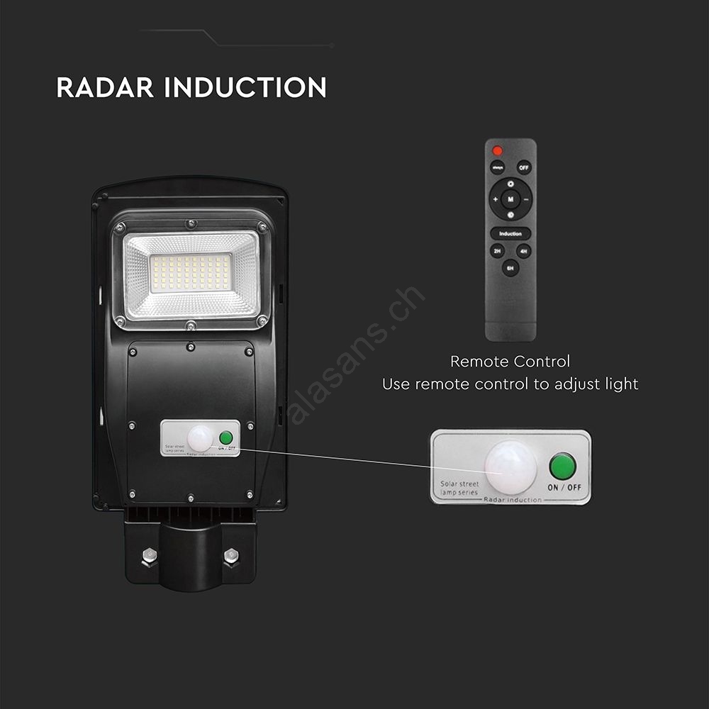 LED dimmbare Solar-Straßenleuchte mit Bewegungs- und Dämmerungssensor LED/6W/3,2V 6000K IP65 5000 mAh schwarz + Fernbedienung