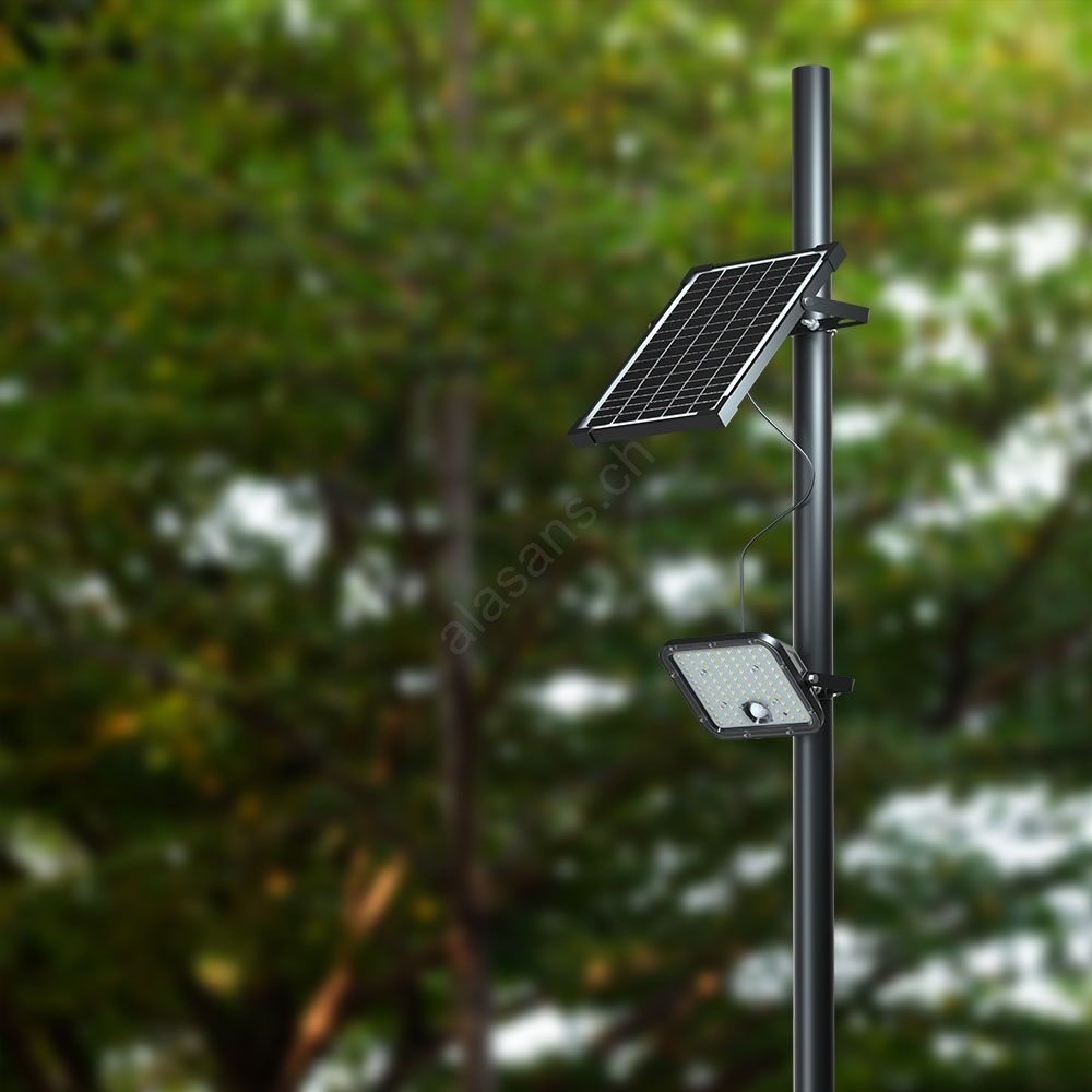 • Praktischer Fluter mit Solarpanel und Bewegungssensor.