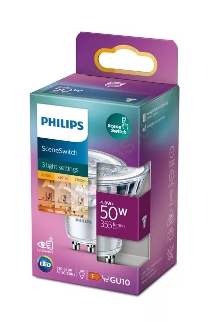 LED-Lampe Philips SCENE SWITCH PAR16 GU10/4,8W/230V 2200/2500/2700K dreistufig umschaltbar