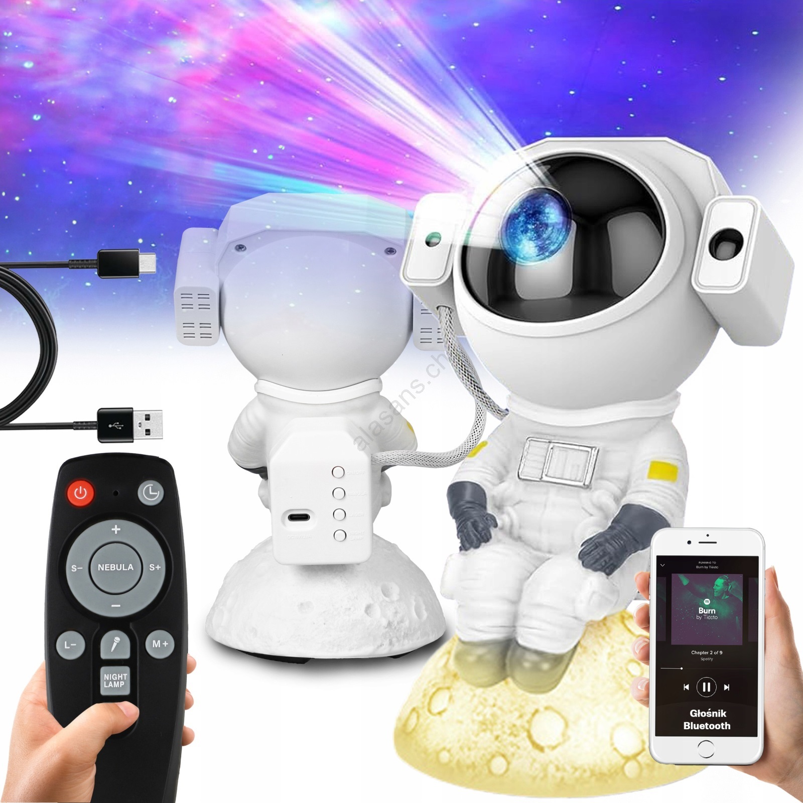 • Nachtlicht mit Projektor 3-in-1: Projektor, Lautsprecher und Nachtlicht.