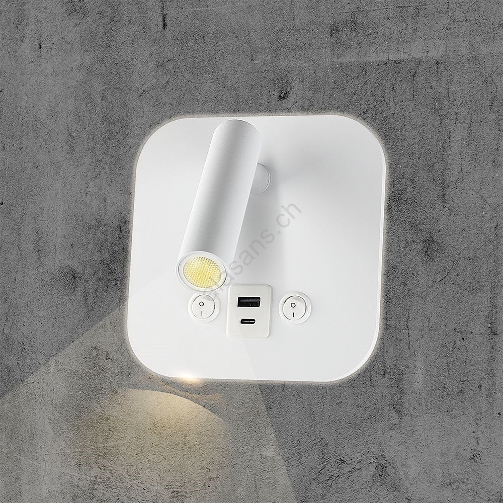 • Moderne Spot-Wandleuchte mit USB-Anschluss.
