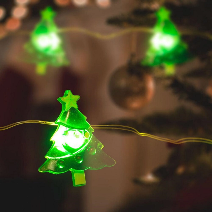 • Dekorative LED-Lichterkette mit Leuchtpunkten in Tannenbaumform.