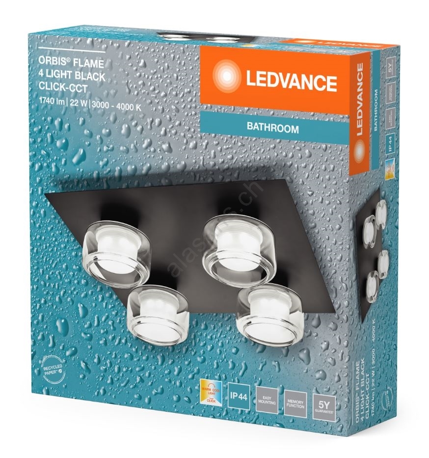 • Ledvance - LED-Deckenleuchte für Badezimmer ORBIS FLAME 4xLED/5,5W/230V 3000/4000K IP44 schwarz