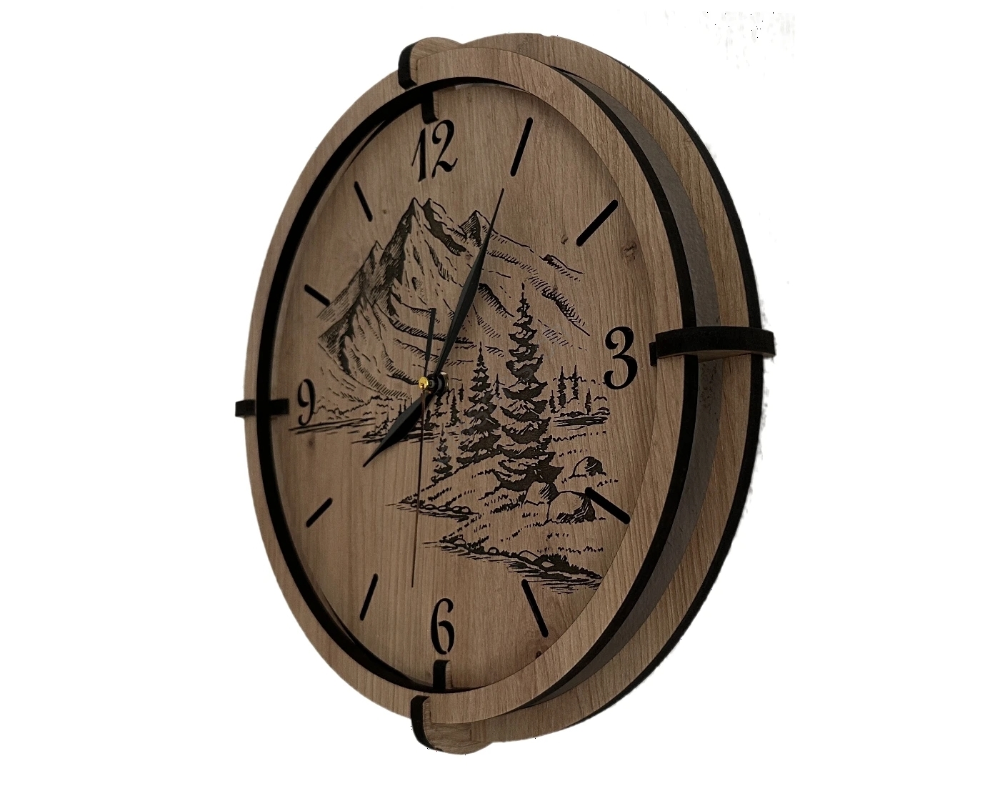 Li-Go 23676/DUB5 - Wanduhr 1xAA Ø 32 cm Eiche/Berge