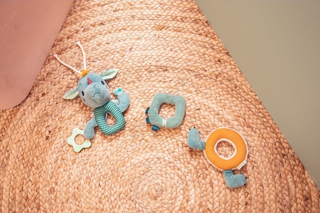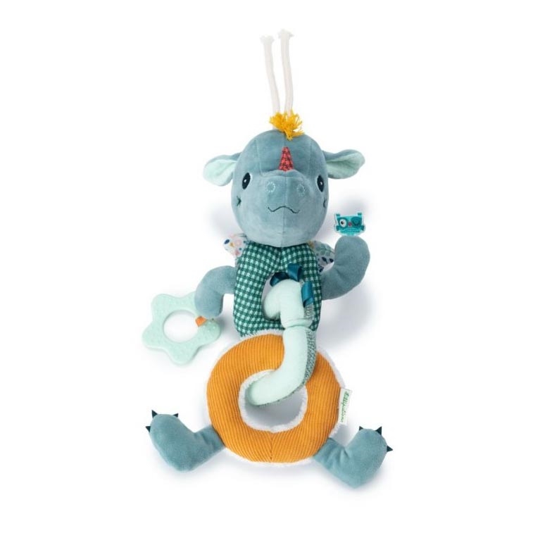 • Diese Plüschkette mit einem kleinen Drachen bietet zahlreiche Aktivitäten, die die Sinne von Kleinkindern anregen.