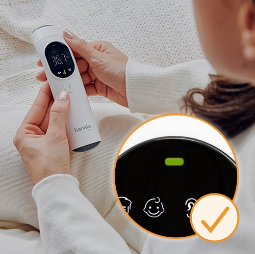 • Die integrierte sanfte Beleuchtung und der stille Modus ermöglichen Messungen auch nachts, ohne das Kind zu wecken.