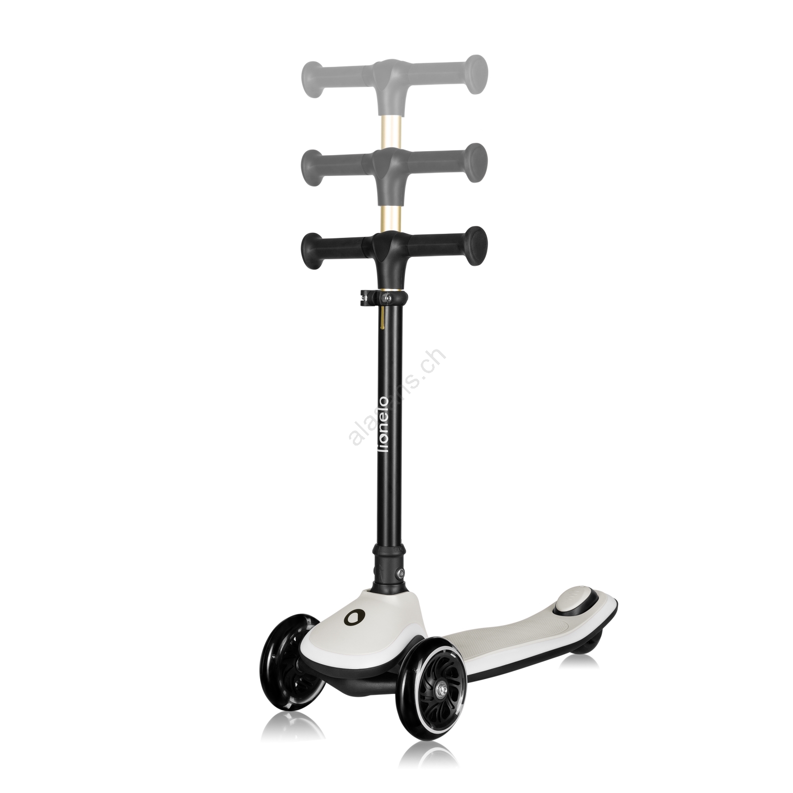• Die Lenkerhöhe lässt sich in 4 Stufen (64–79 cm) verstellen, sodass der Roller ab ca. 3 Jahren bis zu einem Körpergewicht von 50 kg genutzt werden kann.