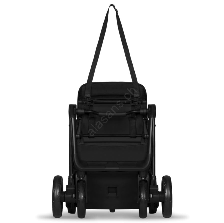 • Das Auto-Falt-System faltet den Kinderwagen auf Knopfdruck automatisch zusammen.