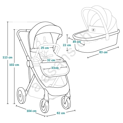 • Im Lieferumfang enthalten: Tasche, Adapter für Babyschale, Moskitonetz, Regenverdeck, zwei Fußsäcke und Wickelunterlage.