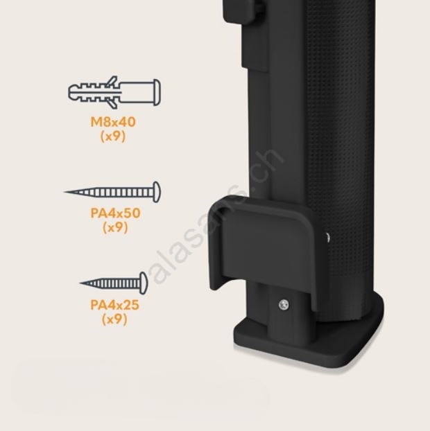 • Das Set enthält drei Montagesätze, sodass dasselbe Gitter je nach Bedarf an drei verschiedenen Stellen montiert werden kann.