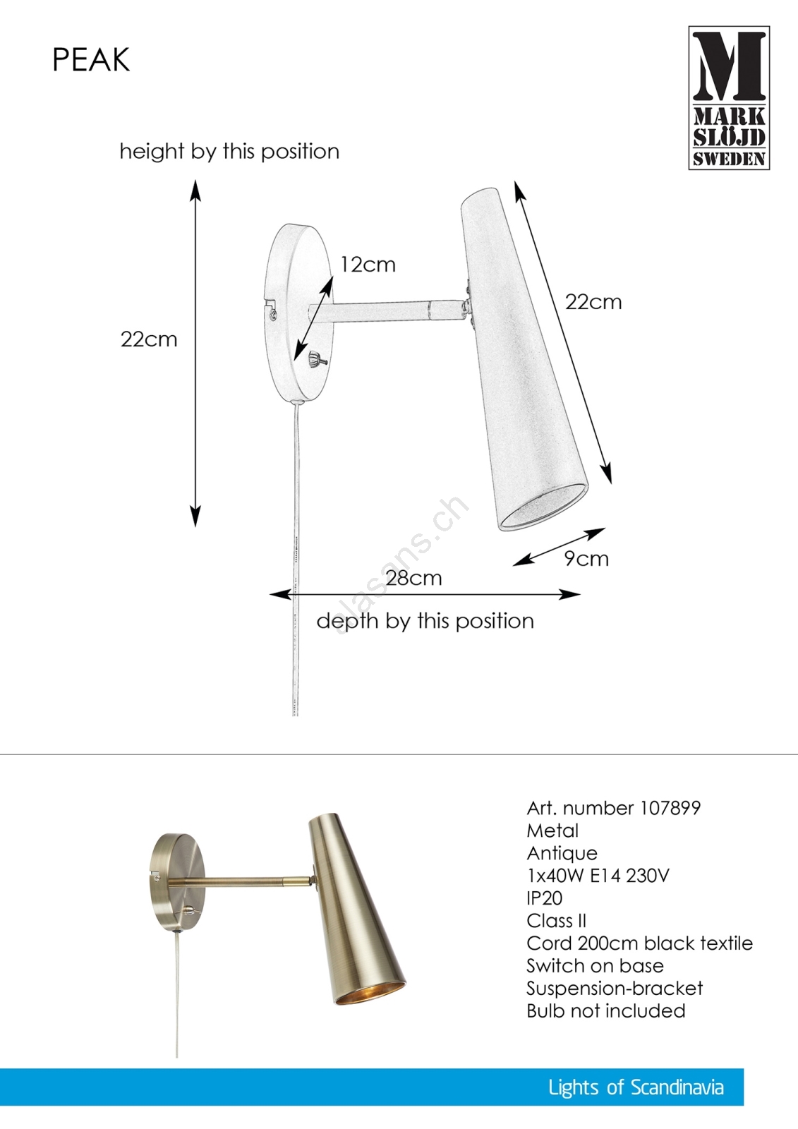 • Markslöjd 107899 - Wandlampe PEAK 1xE14/40W/230V