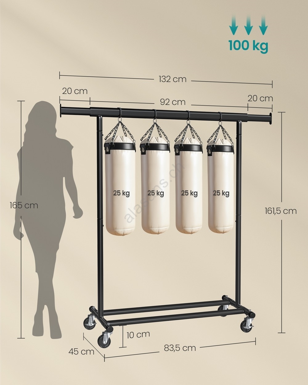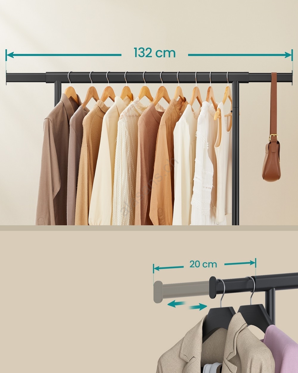 • Die obere Stange trägt bis zu 100 kg (bei gleichmäßiger Belastung) ohne Wackeln oder Umkippen; die ausziehbare Stange bietet zusätzlichen Platz für Ihre Kleidung, Hüte, Taschen usw.
