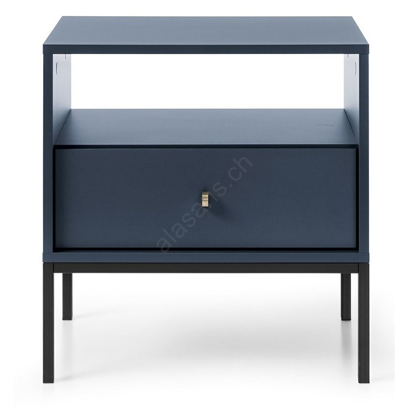 • Nachttisch in dunkelblauer Ausführung.
