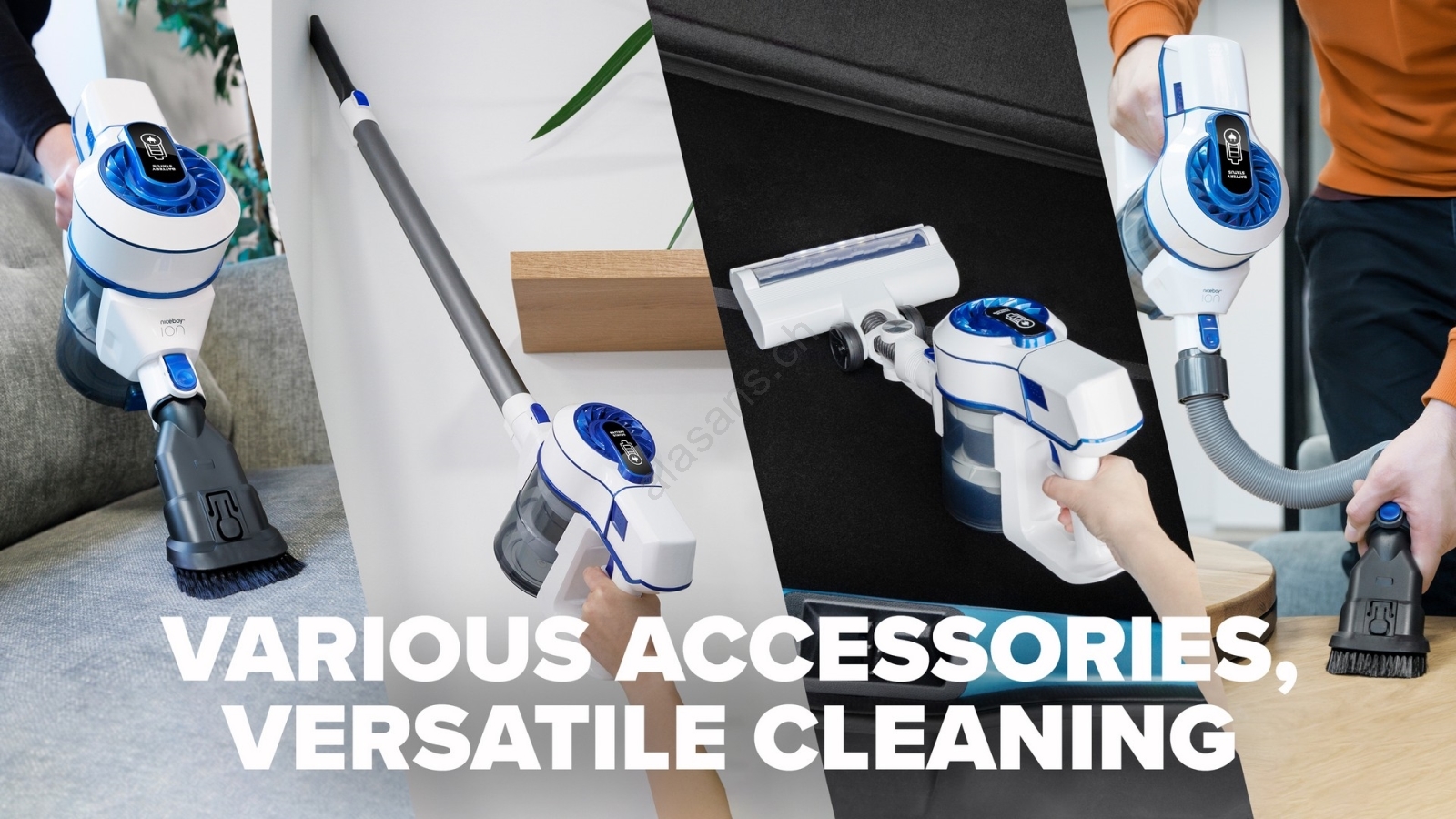 • Dank des Sets spezialisierter Aufsätze reinigen Sie Böden, Sofas, Möbel und sogar das Auto – auch an schwer zugänglichen Stellen.