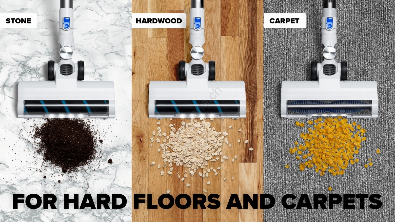 • Er eignet sich mühelos zum Saugen aller harten Böden wie Parkett, PVC, Linoleum sowie Teppiche und Läufer.