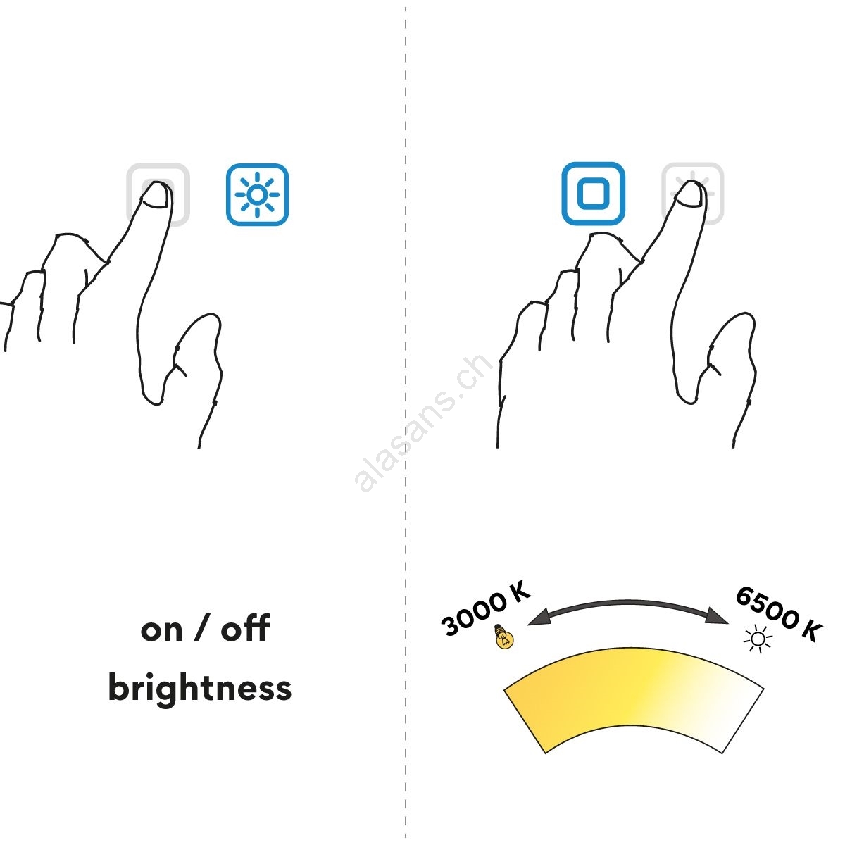 • Der Spiegel verfügt außerdem über eine Memory-Funktion, die die letzte Helligkeits- und Farbtemperatureinstellung speichert.