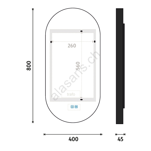 • Der Spiegel verfügt zudem über eine Speicherfunktion, die die letzte Einstellung von Helligkeit und Farbtemperatur speichert.