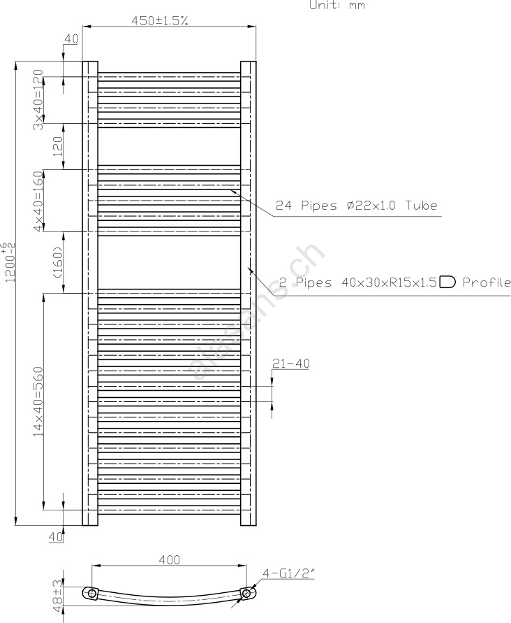Novaservis - Handtuchheizkörper 490W/230V 120x45 cm weiß, abgerundet
