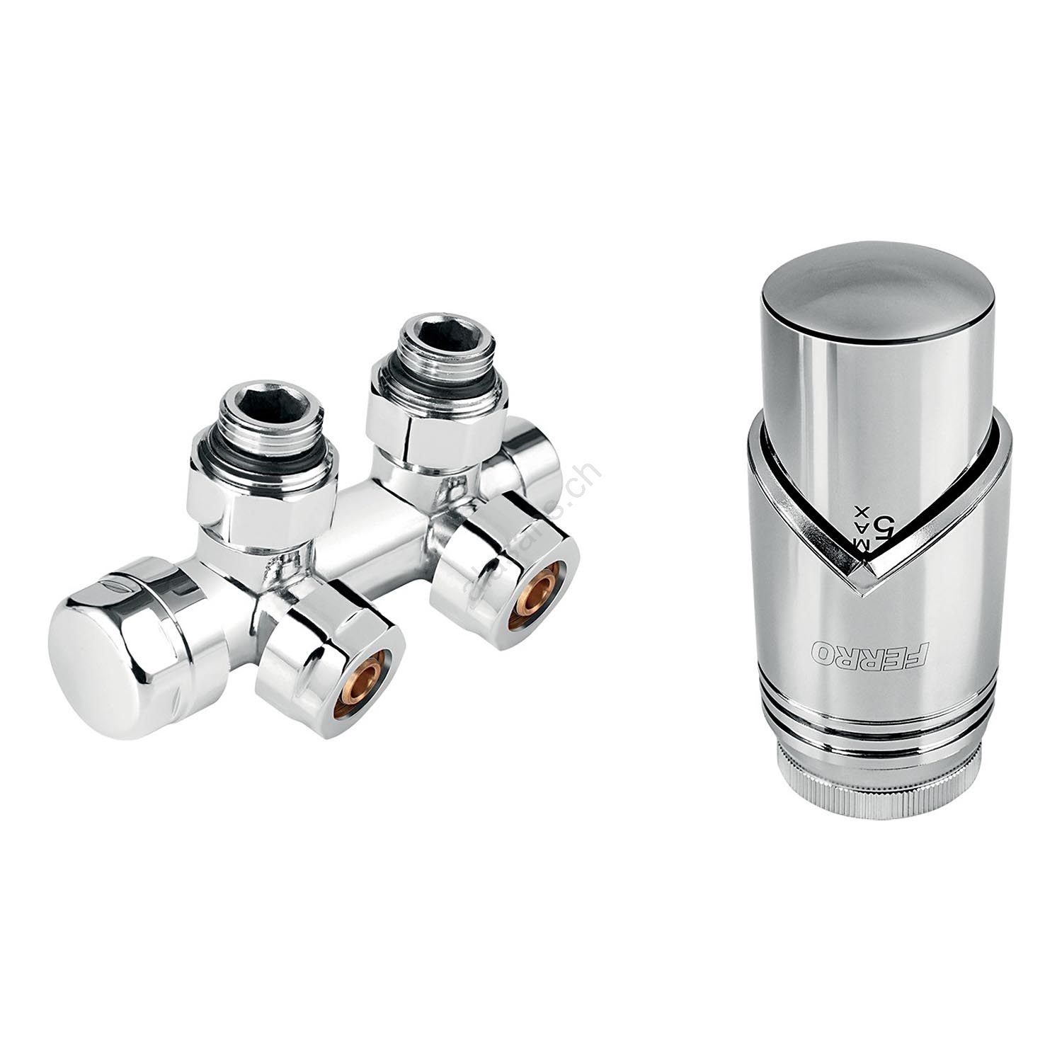 Novaservis - Set für Heizkörper mit Mittelanschluss, Eckausführung, glänzender Chrom