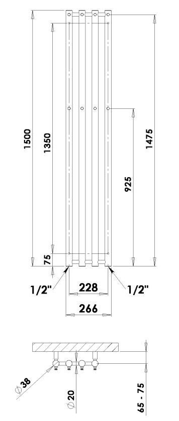 P.M.H. R2B - Bad-Handtuchheizkörper ROSENDAL 350W 150 cm schwarz