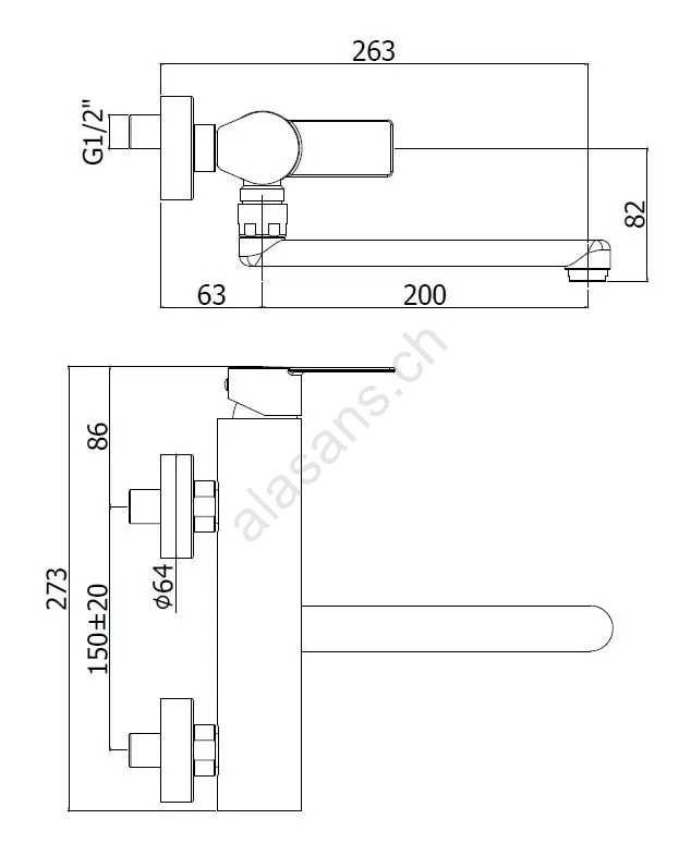 • Wand-Küchenarmatur in Edelstahl-Ausführung.