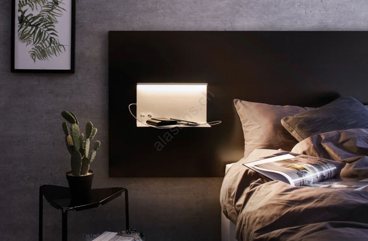 • Sie dient als Leselampe am Bett und ersetzt gleichzeitig den Nachttisch.