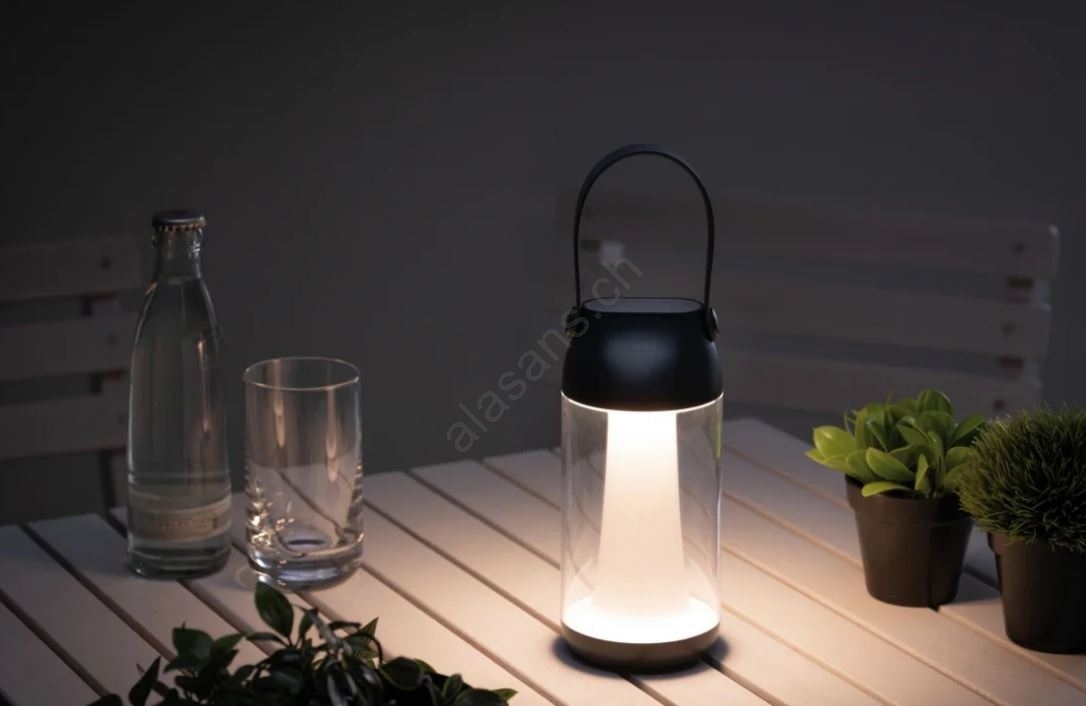 • Tragbare Tischlampe, die angenehmes Licht überallhin mitnimmt und fast überall platziert oder aufgehängt werden kann.